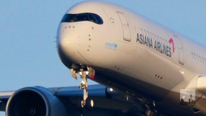 Asiana Airbus A350 arriving from Seoul, Korea in Frankfurt, Germany