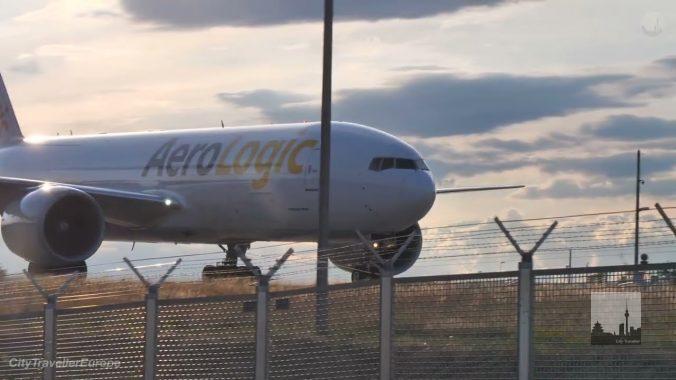 Boeing 777 Cargo from AeroLogic plane crosses bridge on Frankfurt Airport after landing #planespotting