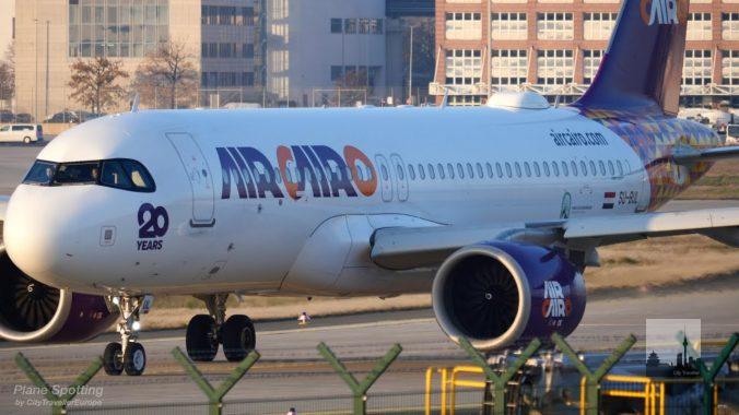 Closeup: Air Cairo Airbus 320 on taxiway at Frankfurt Airport