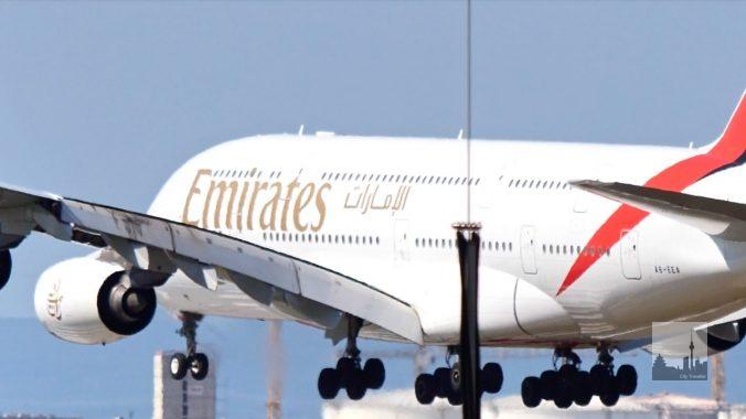 Emirates Airbus A380 landing in Frankfurt from Dubai.