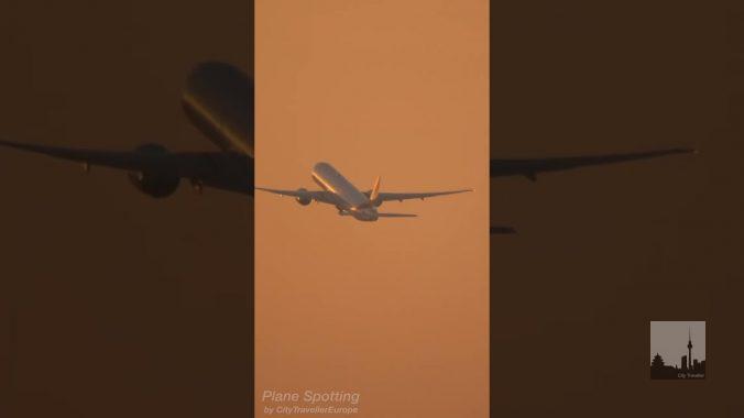 Emirates Boeing 777 takes off from Frankfurt Airport and makes nice right turn for Dubai