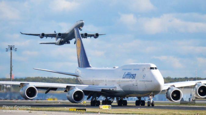 Rare! Airbus A340 launch above Boeing 747 from Frankfurt Airport