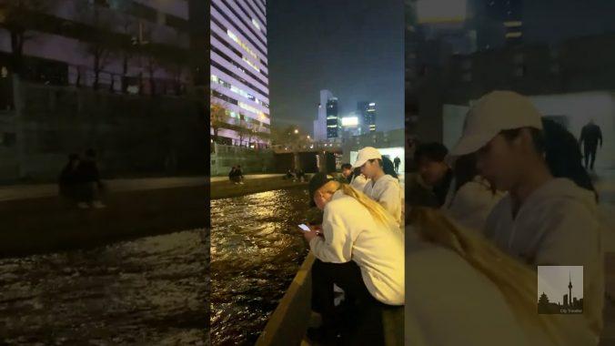 Relax at Cheonggyecheon Stream at night #seoulmysoul #seoul #seoultravelguide #seoulguide