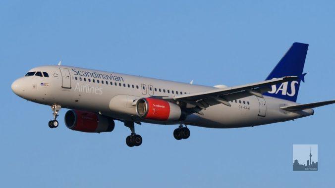 SAS Airbus A320 arrives at Frankfurt Airport from Copenhagen, Denmark
